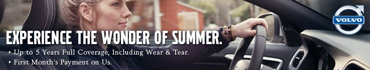 At our Wonder of Summer Event, the payments and protection are all designed to help you explore more this summer. When you purchase or lease a new 2014 or newer Volvo your first month's payment* is on us, and you'll get full coverage with our Safe + Secure Coverage Plan, including wear and tear, for up to 5 years. So, relax and enjoy your summer in a new Volvo.