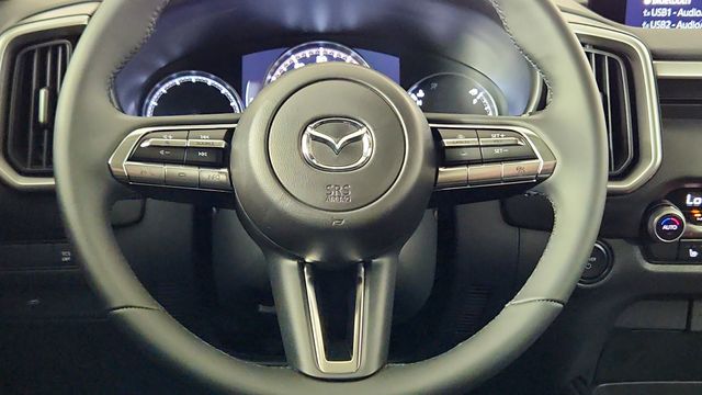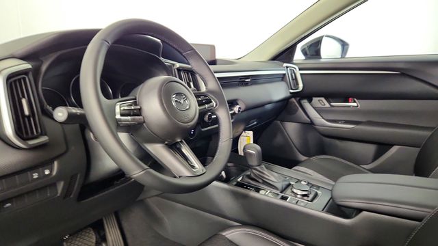 Crafted with meticulous attention to detail, the CX-50 Hybrid's interior exudes a refined and sophisticated ambiance. The leather-wrapped steering wheel and shift knob, paired with the half leatherette seat trim, elevate the cabin's premium feel.